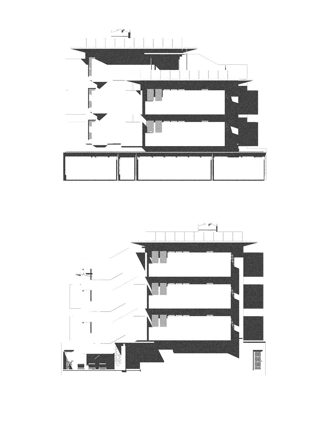 The tropical climate of Ghana encourages us to design with shade as a central element. We explored the interplay between openings and shading, between shadow and light. While the floor plan remains relatively simple, the spatial experience gains depth and richness through the act of “peeling” the building’s walls to form shaded areas. These shaded recesses add both environmental performance and visual complexity to the façade. The building follows a typical floor plan configuration, organized into two main masses.