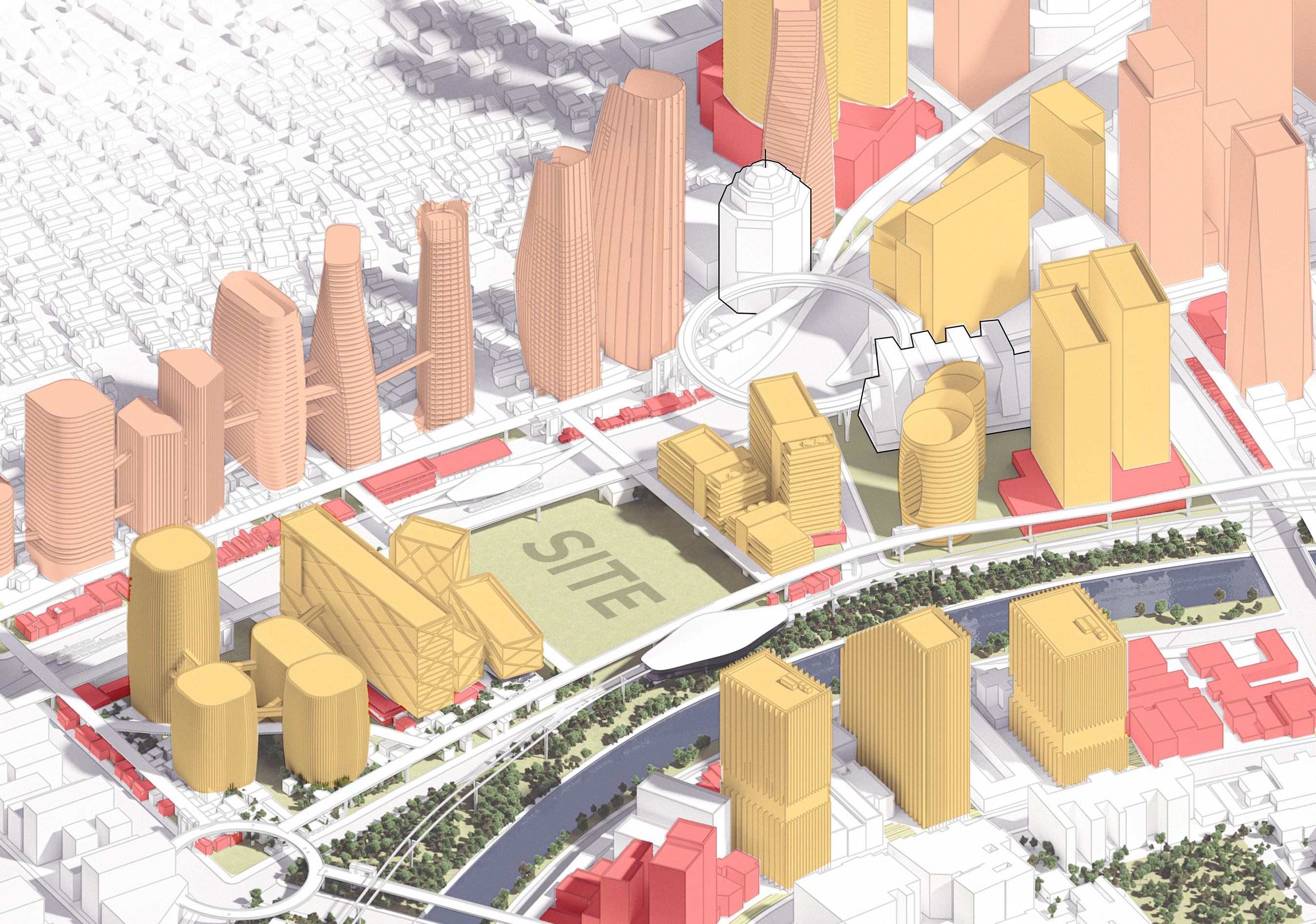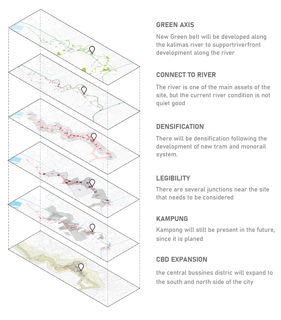 The site is located in the southernmost part of the current CBD area, where the surrounding land use is planned for a mix of functions, including residential, office, commercial, and real estate developments. The area’s unique combination of road corridors and a river presents significant potential for future growth. In this thesis, the city is projected to develop more high-rise buildings in the coming years, aligning with its urban expansion and densification trends.