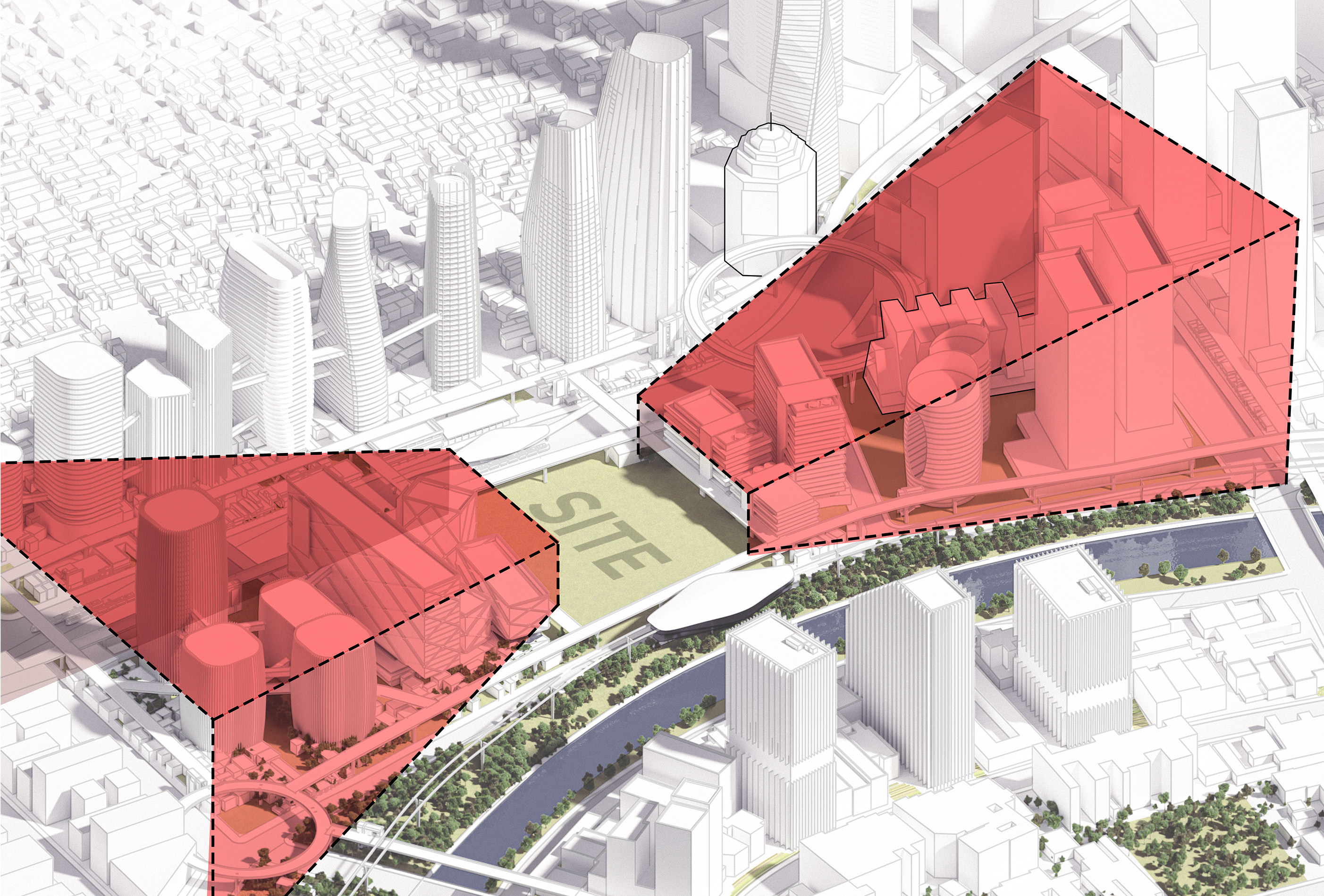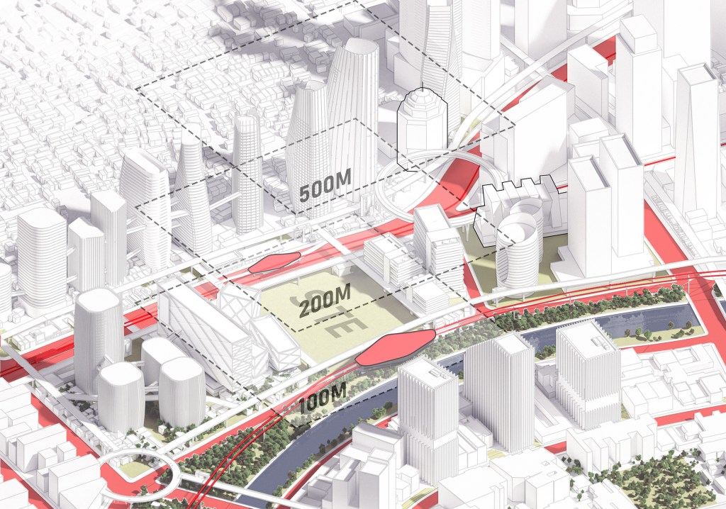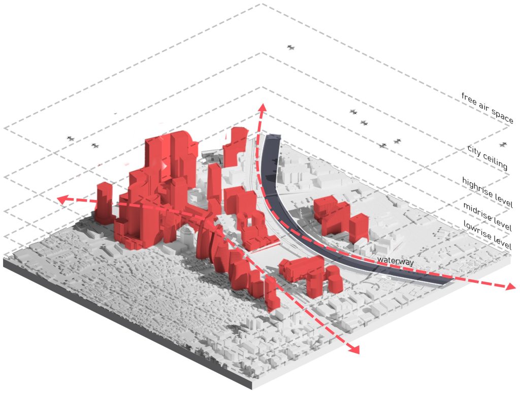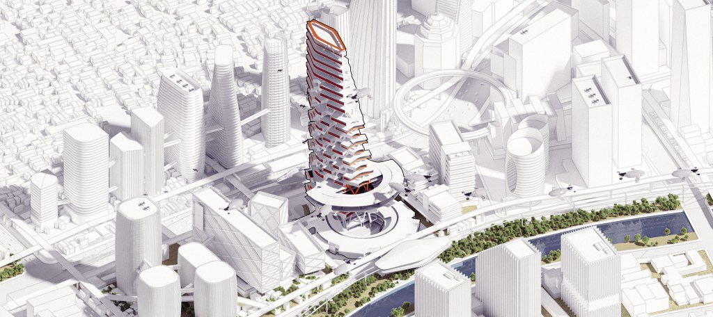 The emerging verticality of the city, combined with the introduction of airborne VTOL transportation, will redefine how we design urban landscapes. The previously underutilized airspace surrounding buildings will no longer remain empty; instead, it will become an active and integrated part of the city’s mobility network. This shift challenges conventional urban planning, requiring new architectural strategies to accommodate three-dimensional movement and connectivity.