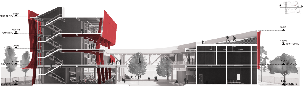 The RED School is a school design located in Surabaya. This project was a 4th Semester design studio from my bachelor’s degree. This studio focused on teaching students the fundamentals of multi-story building design, emphasizing spatial organization, system integration, and functionality.
