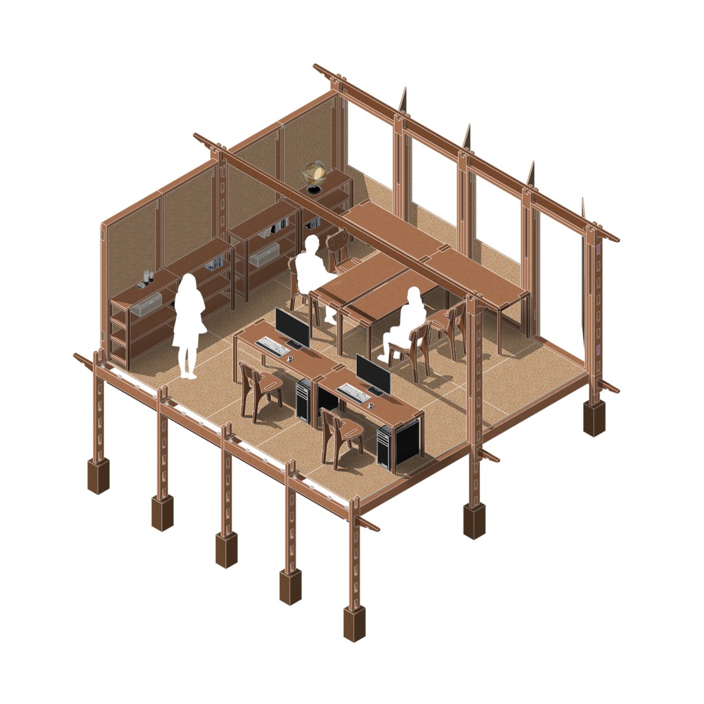 In this project, I collaborated with my fellow Indonesian colleagues, Jauhar and Yafie, as well as Sara, a dear friend from Palestine. Together, we aimed to create a design for a modular and flexible school—one that can be assembled and relocated when needed, but also has the potential to become permanent should conditions allow.