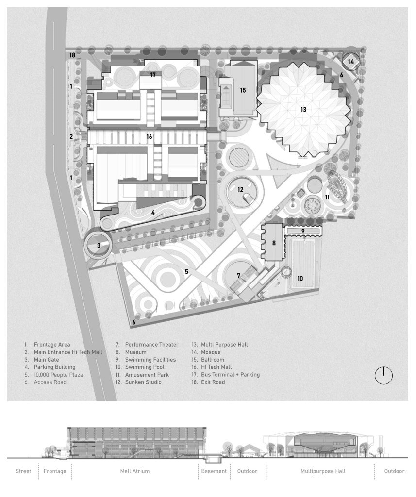 There are several key parts of the whole masterplan, one of which is the old and abandoned Hi Tech Mall Building. This building used to be the center for tech and electronic shopping, such as laptops, computers, consoloes etc. Eversince the age of e-commerse rise, the market shift from offline shopping to online shoppin, where they also provide better deals. But we hope to reevitalize this building again by reshaping the frontage of the building to be more walkable and pedestrian friendly.