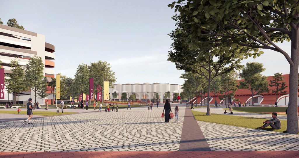 One of the strategies we used was designing a sunken building feature, with a rooftop that doubles as an active public space. This approach helps manage the visual hierarchy across the site, allowing the MICE building to maintain its prominence and appear grand and commanding within the overall composition.